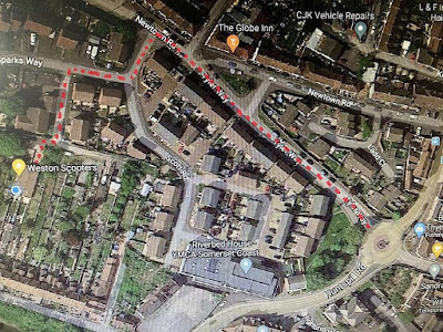 Cross two roundabouts staying on A38. At the third turn right onto Tyler Way. Then left onto Scott Road, right into Sparks Way then left again before the little white building. Turn right at the end of the lane.