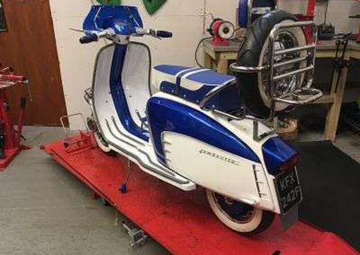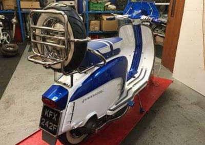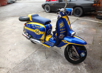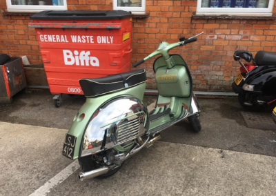 Projects Vespa SS90 – SOLD Multiple Trophy winner! Click to view all 16 images >> Vespa T5-251 Mk1 Vespa T5 with Pinasco 251 engine and disc brake Click to view all 18 images >> Vespa GS Custom build… Click to view all 11 images >> Lambretta Li Special A rebuild for a customer Click to view all 19 images >> Vespa ET3 Delivered to customer Click to view all 22 images >> 150 Super Customer scooter Click to view all 9 images >> Customers Scoots Something old, something new… Click to view all 33 images >>